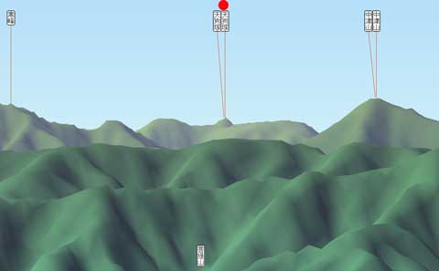 カシミールを利用して天狗塚(1812)高松市内の可視マップ。